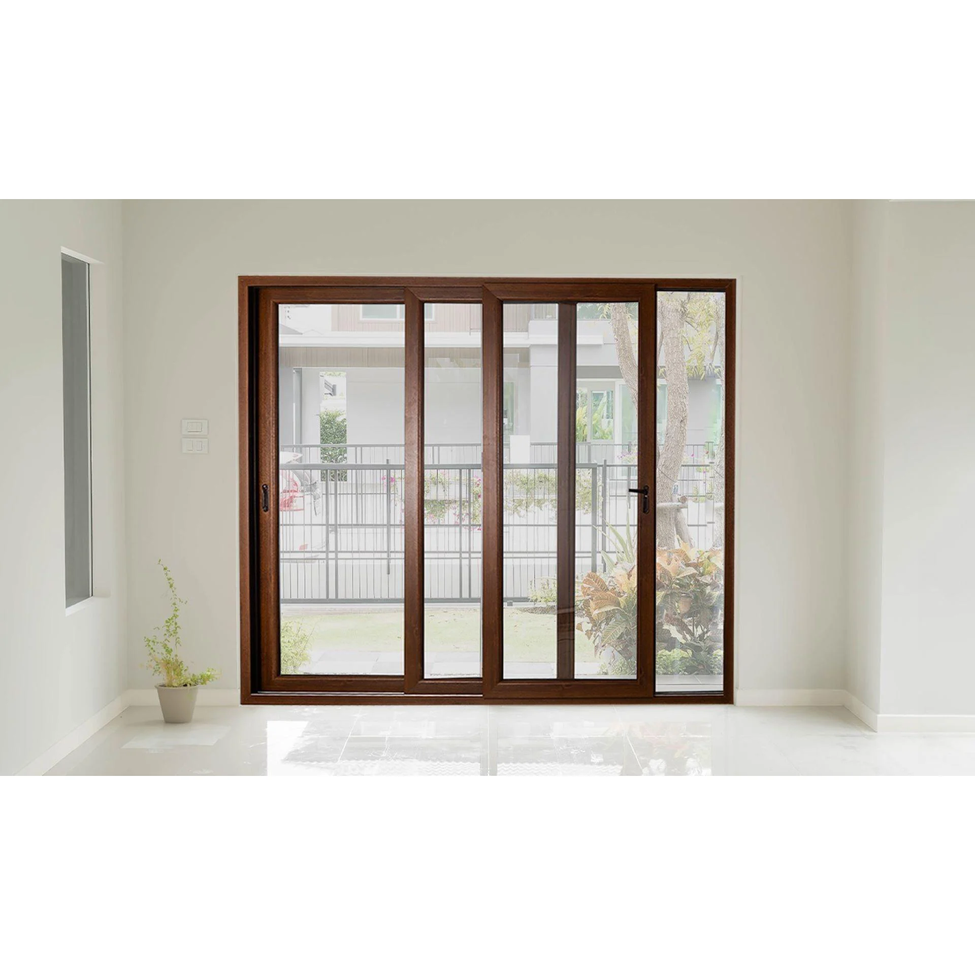 UPVC sliding doors adopt a narrow-frame design paired with large-area double-layer insulated glass, which not only ensures excellent lighting effects but also enhances sound and heat insulation performance.